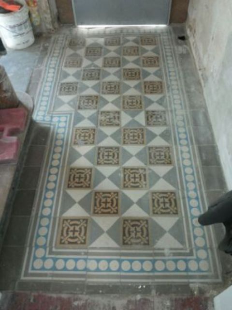 Zu unseren Tätigkeitsfeldern gehört auch die Aufbereitung alter Fliesenbeläge. Hier haben wir eine Beispielarbeit für sie dargestellt.
